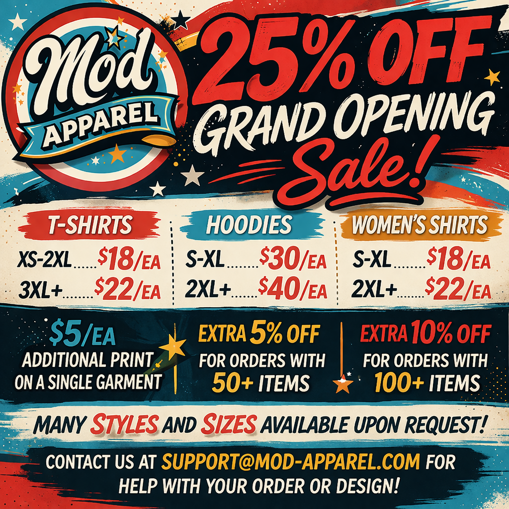 At MOD Apparel, our focus is on helping you get your designs and logos on premium quality material with multiple selling options.